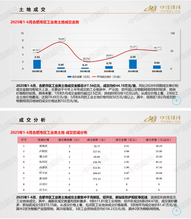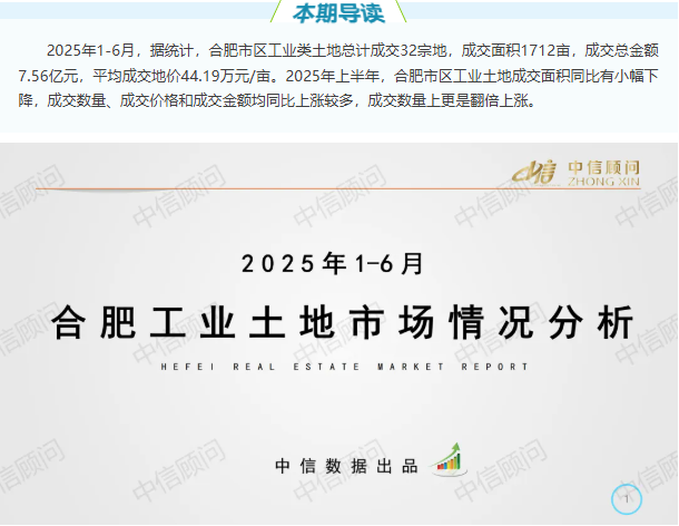 土地市場 | 2025年1-6月,合肥工業用地成交32宗1712畝,平均地價44.19萬元/畝